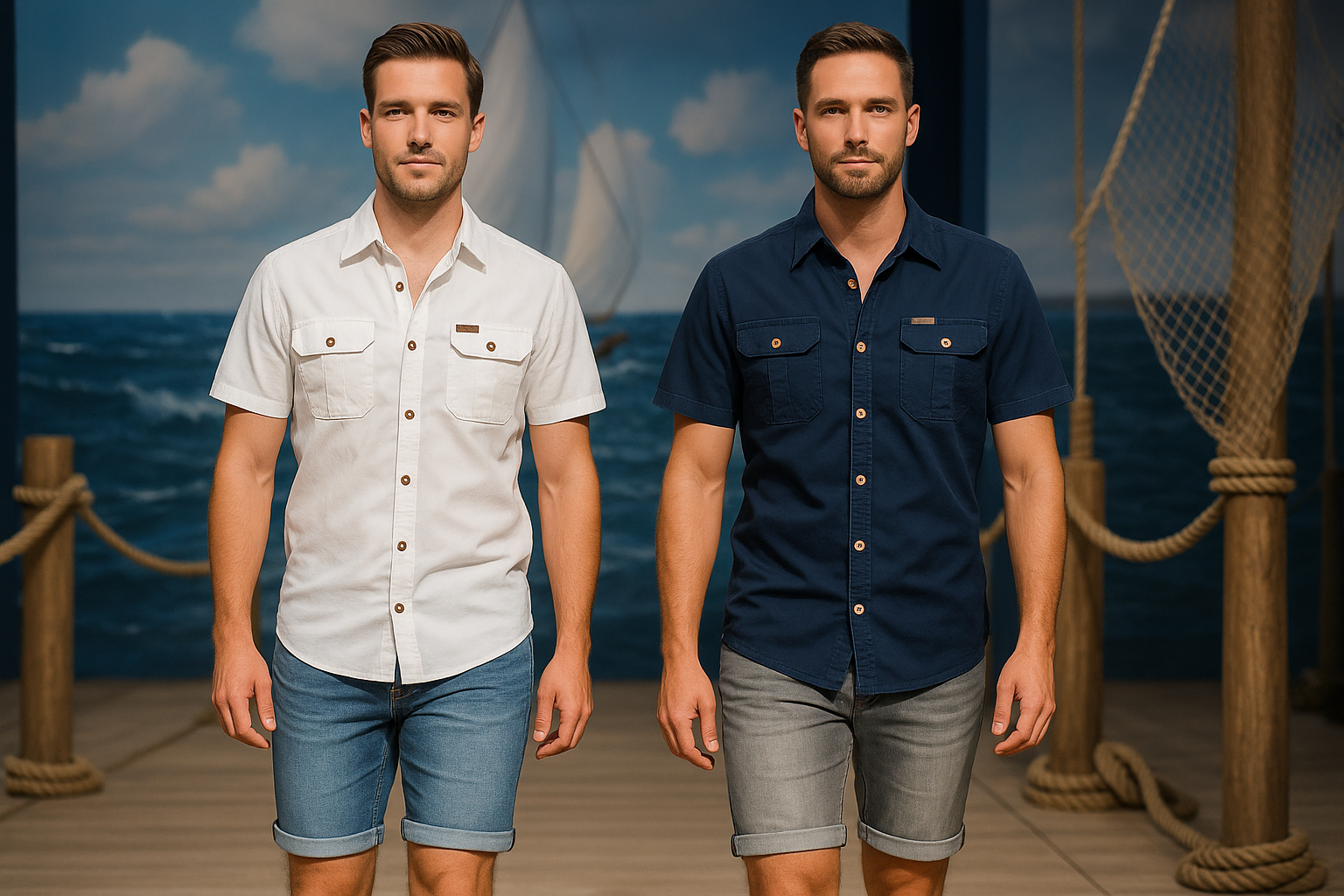 - Herren-Kurzarmhemd aus reiner Baumwolle